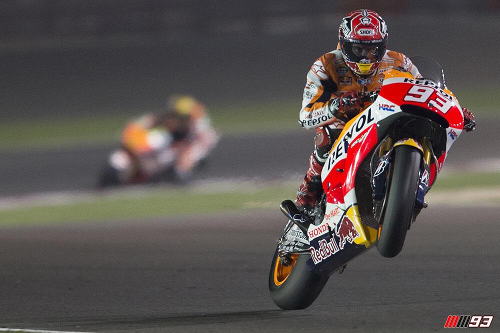 Ya te encuentras a las primeras de cambio con Màrquez fuera de la pista y pensando "otra vez, ya toca remontar. ¿Lo conseguirá esta vez?". Pero no solo el 93, también el 46, el nueve veces campeón del mundo que, en su caso, sí que consiguió llegar al grupo delantero y dio toda una lección a los dos Andrea, Iannone i Dovizioso, y a su compañero, Jorge Lorenzo, a quien problemas con el casco le impidieron luchar hasta el final, si no... ¿qué habría pasado?. Màrquez dio otra lección, una vez más, de pilotaje y de superioridad, y fue pasando uno a uno a sus rivales. Incluso se permitió el lujo de marcar la máxima velocidad en pista, más de 350 kilómetros por hora... buff.