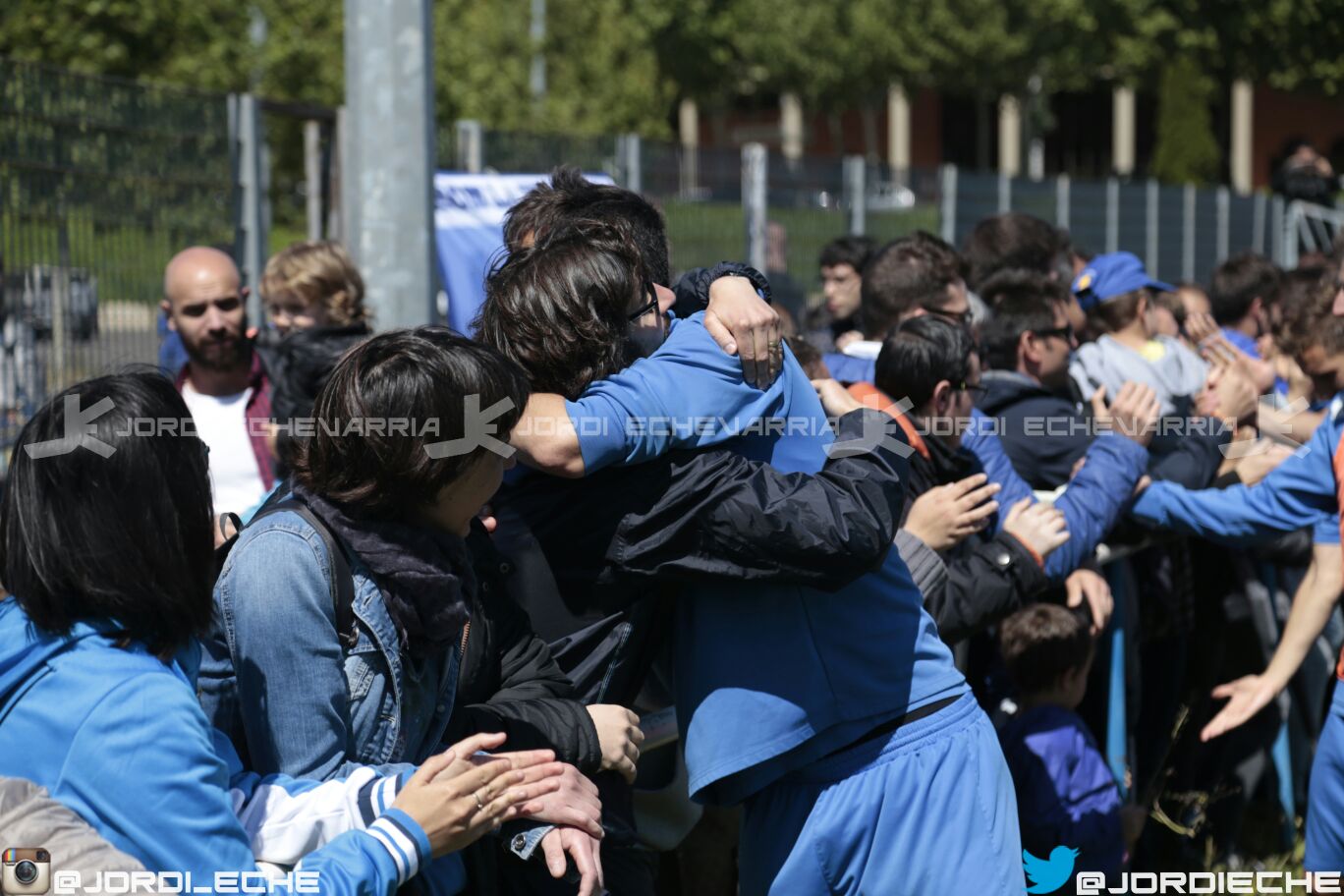 Abans que tots els amants de la fotografia em digueu i amb raó: "està desenfocada", us diré "sí, ho sé". Però com va dir el meu amic Sergi Caufapé "a veure si sou capaços de dir a 23 tios que acaben d'aconseguir classificar-se per un play-off d'ascens que s'estiguin quiets perquè la foto no surti moguda" i si a això afegiu el fet que ho han fet amb pagaments pendents i amb una situació crítica en alguns dels casos... doncs això: la foto no és nítida, sí.