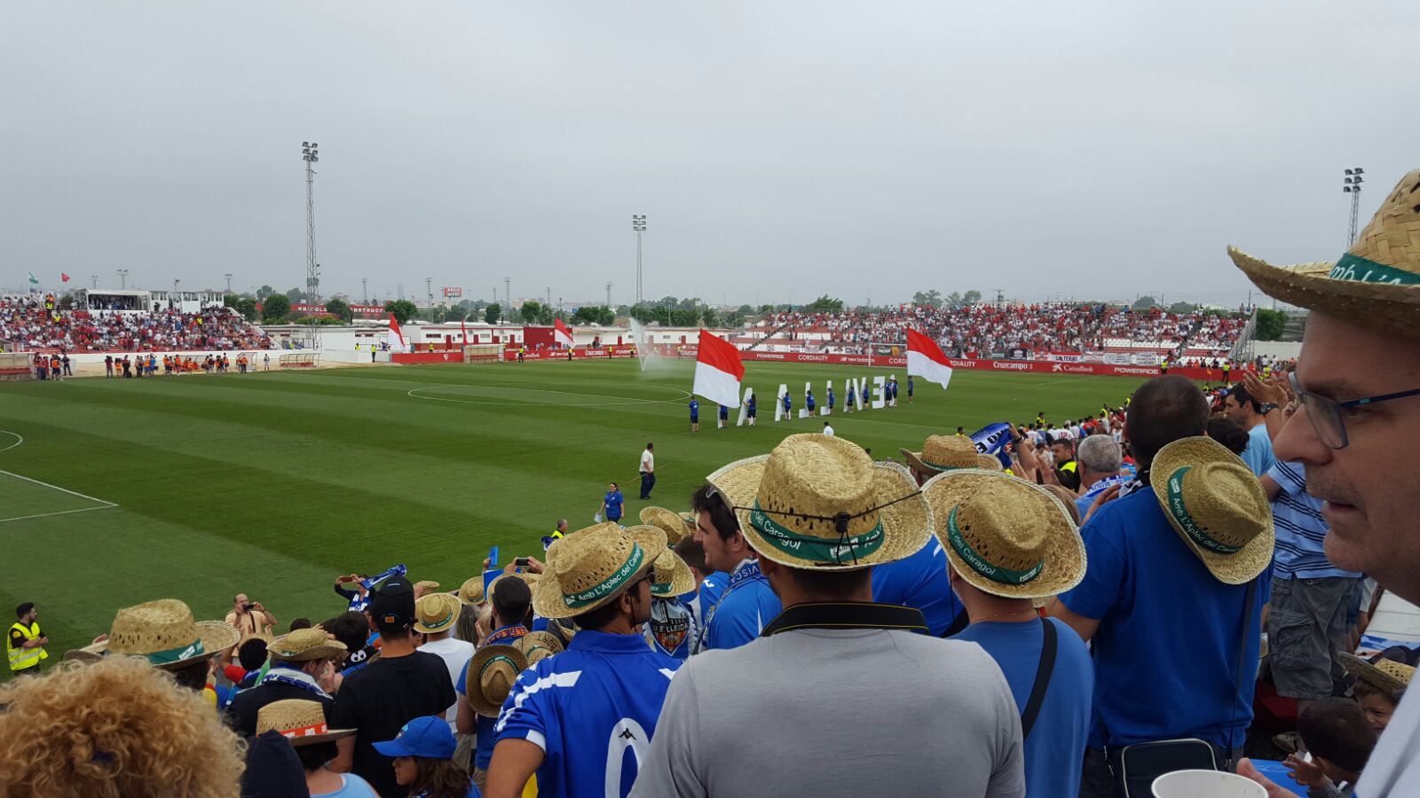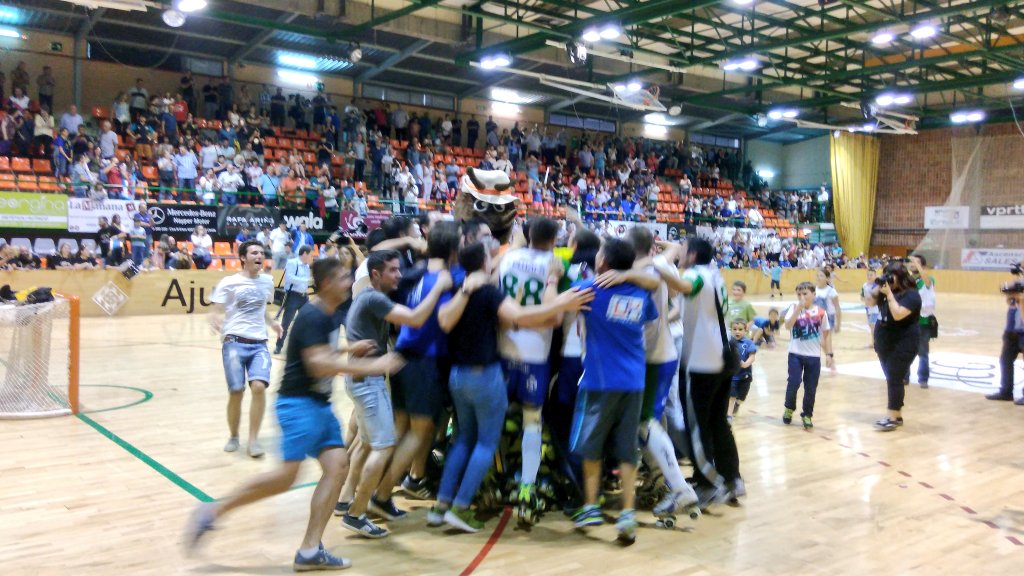 Antes de que todos los amantes de la fotografía me digais, con razón: "está desenfocada", os diré "sí, lo se". Como dijo mi amigo Sergi Caufaé "a ver si sois capaces de decirle a 23 tíos que acaban de clasificarse para un play-off de ascenso que se estén quietos porque la foto saldrá borrosa" y si a eso le añades que lo han hecho con pagos pendientes y con una situación crítica en algunos casos... pues eso: que la foto no es nítida, lo se.